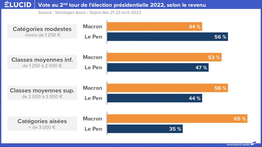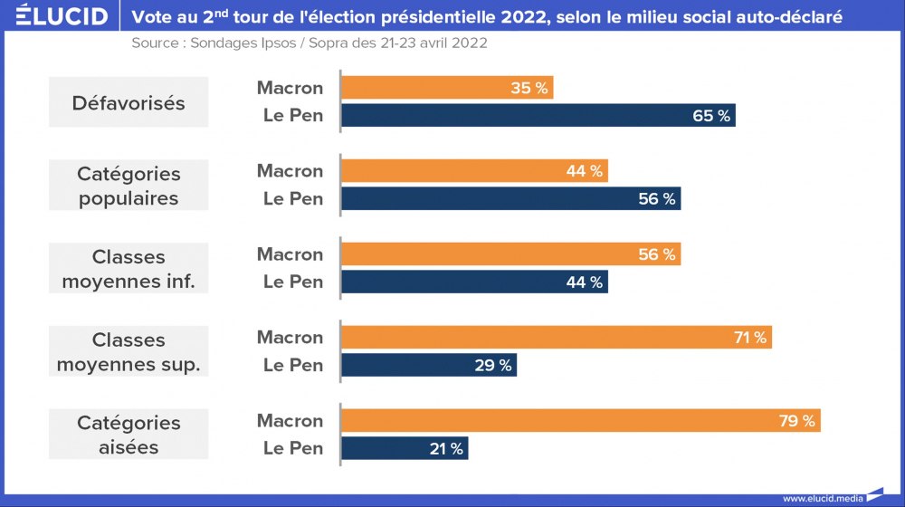 On observe surtout à quel point cette élection a représenté un vote de classe exemplaire : les plus défavorisés, les plus malheureux, ont plébiscité Le Pen, alors que ceux qui profitent du système actuel ont voté Macron.