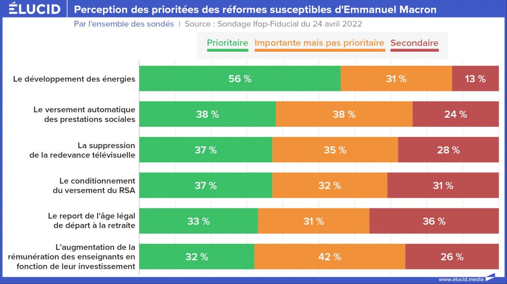 Logiquement, seul un tiers des français juge prioritaire l'application des mesures du programme de Macron - sauf pour le développement des énergies, mesure majoritairement soutenue.