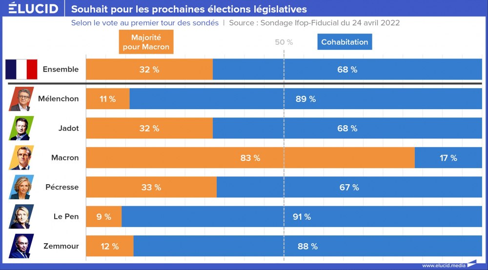 Il ressort de tout ceci que seul un tiers des Français souhaite que Macron obtienne une majorité aux législatives.