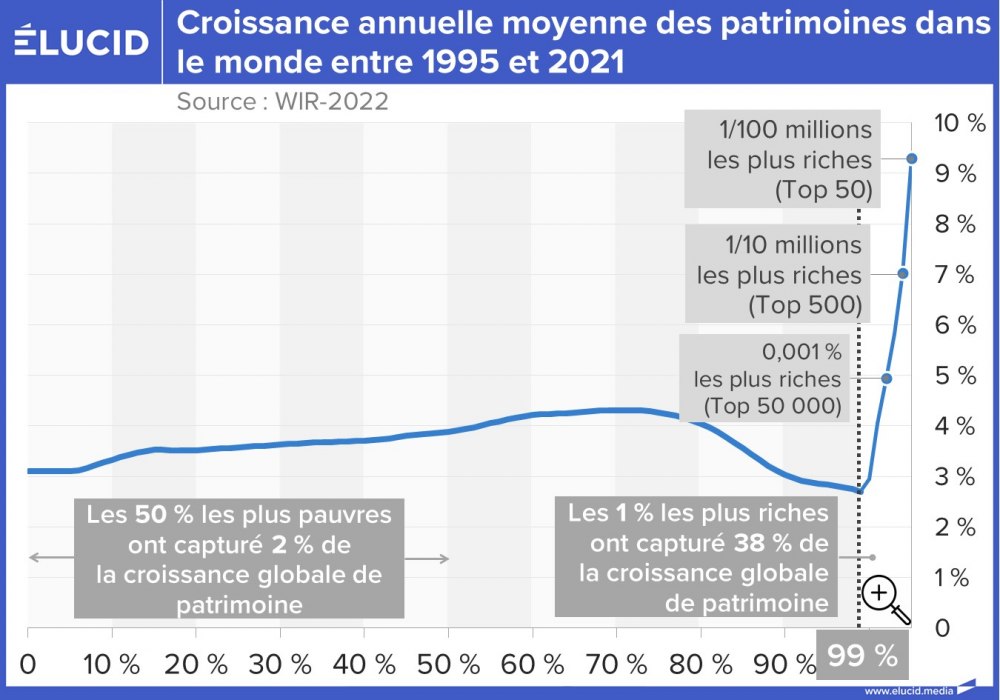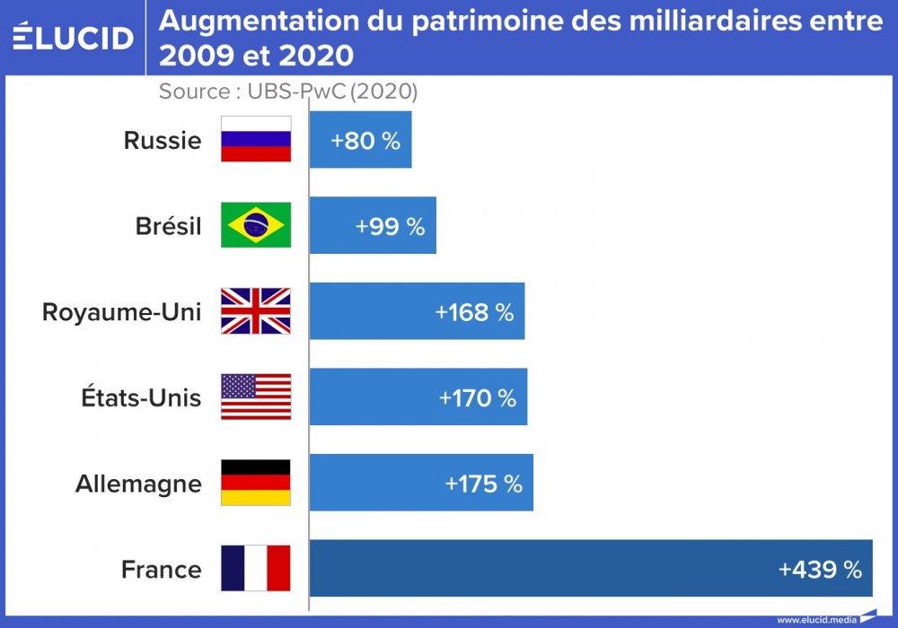 On le constate avec l’évolution du patrimoine de la cinquantaine de milliardaires français, qui a été multiplié par plus de 5 en une dizaine d’années, représentant une croissance annuelle moyenne de près de 17 % par an. Cela montre au passage le scandale de la suppression de l’impôt sur la fortune, qui ne taxait au maximum ces patrimoines qu’à hauteur de 1,5 %.