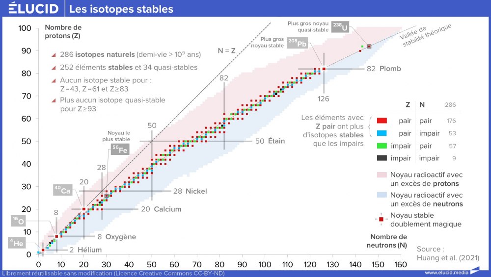2He1), aucun noyau stable ne possède plus de protons que de neutrons. Les éléments les plus légers (jusqu’au calcium 40