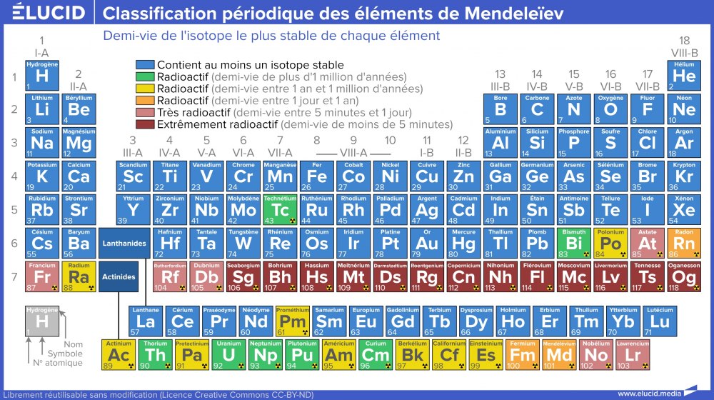 Au-delà du Plomb (Z=82), plus aucun élément n’est stable. Au-delà de l’Uranium (Z=92), plus aucun élément n’est même quasi-stable ; on les nomme les Transuraniens.
