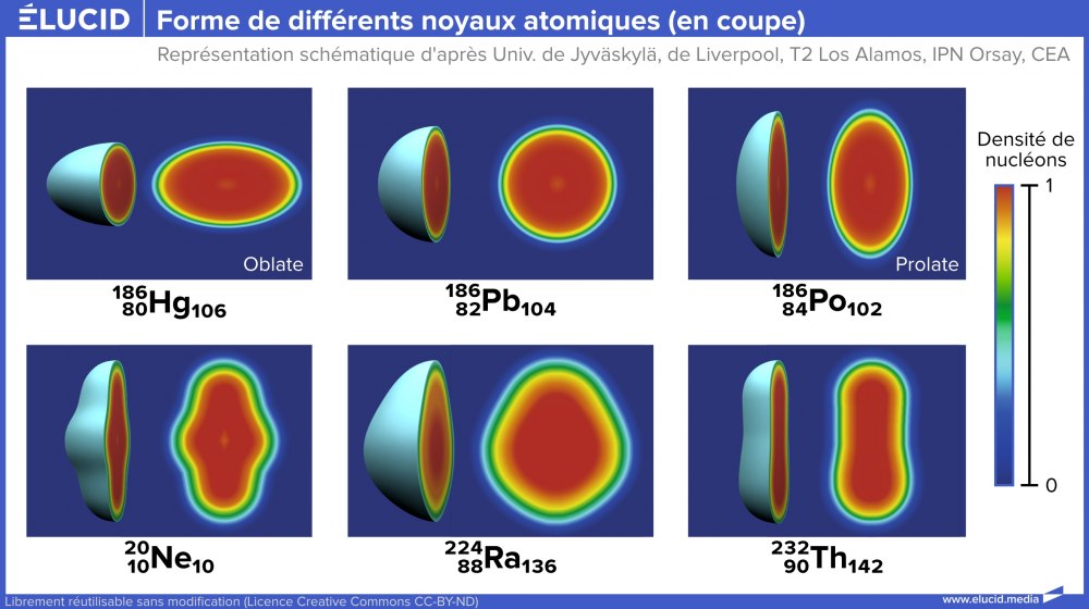 La radioactivité tend donc à faire revenir les noyaux instables vers la vallée de stabilité, où l’énergie de liaison est maximale. Pour atteindre la stabilité, ces noyaux vont devoir subir une série de désintégrations radioactives. Elles vont permettre au noyau de se rapprocher d’une forme sphérique – l’excès d’un type de nucléons le déformant.