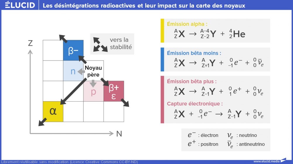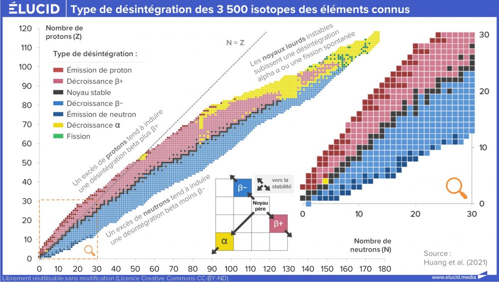 On comprend donc comment les isotopes radioactifs se répartissent sur la carte des noyaux en fonction de leur type de désintégration.