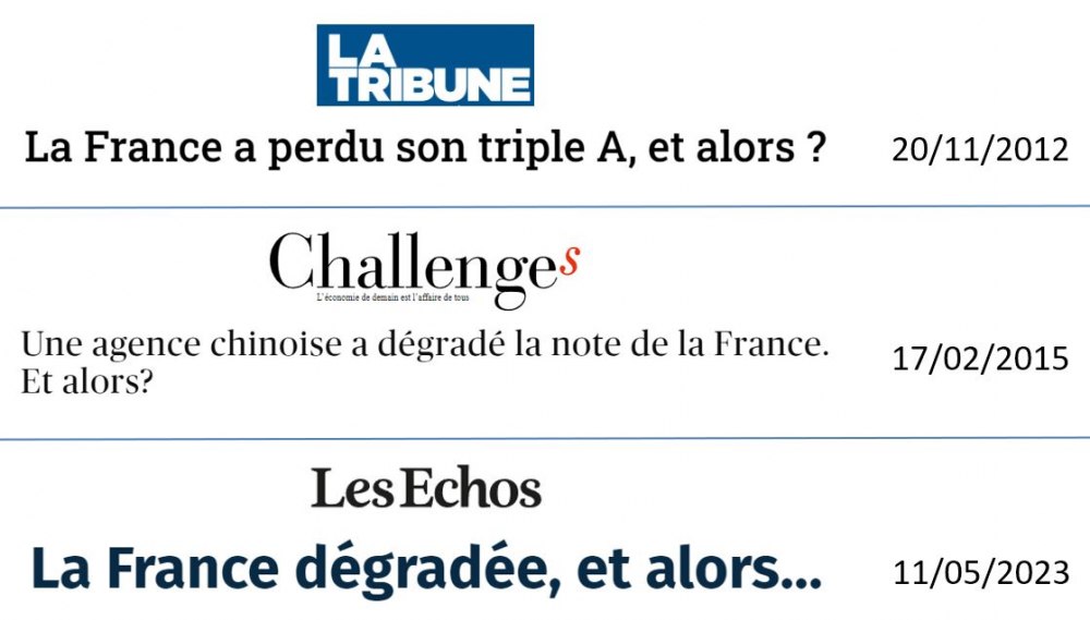 Il aura donc fallu attendre 2024, après une année de long suspens, pour que l'agence de notation S&P décide finalement de dégrader à nouveau la note de la France, comme l’avait fait sa concurrente Fitch l’année dernière. En effet, les années passent et régulièrement, les agences de notation dégradent leur appréciation de la solidité de la dette publique française, sanction logique de son expansion continue. Bruno Le Maire s’en plaint, mais qu’espérait-il, lui qui a endetté la France de 1 000 milliards d’euros supplémentaires ? D’autres critiquent ces agences, mais elles ne sont que le thermomètre de la fièvre de l’endettement qui les anime. Le pire est que ces notations d’agences américaines sont en réalité probablement beaucoup trop élevées. Explications.
