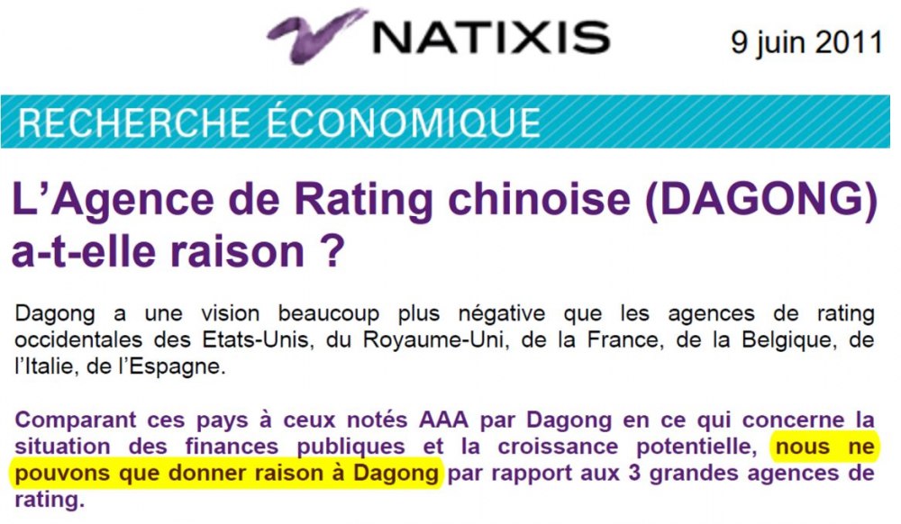 Cependant, le vrai problème est que la presse ne relève jamais que les agences américaines sont « dures avec les pays émergents, clémentes avec les Occidentaux ». Leurs notations ne sont en effet pas réalistes, ce dont convenait d’ailleurs Patrick Artus en 2011 :