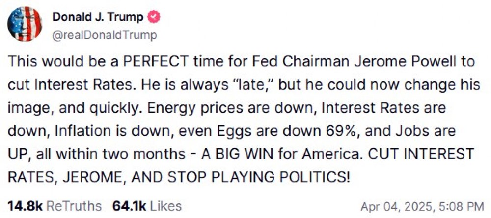 « Ce serait le moment PARFAIT pour le président de la Fed de réduire les taux d'intérêt. » - Source