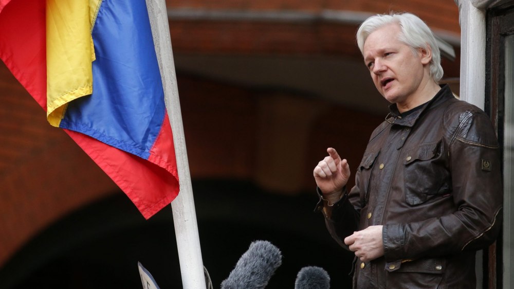 Julian Assange s'exprime sur le balcon de l'ambassade de l'Équateur à Londres, 19 mai 2017 - Daniel Leal - @AFP