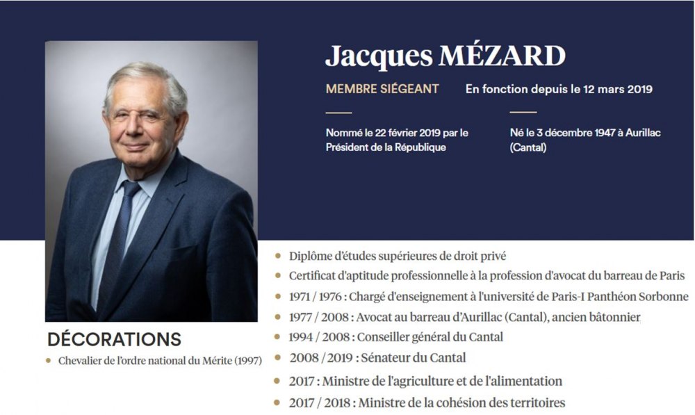Cet avocat a été sénateur durant une dizaine d’années. Point positif, il a été professeur de droit durant 5 ans ; point négatif, c’était sous Georges Pompidou, et la jurisprudence a beaucoup évolué depuis. Il a été ministre d’Emmanuel Macron pendant 2 ans, qui l’a nommé au Conseil. Aucune expérience particulière en Droit constitutionnel.