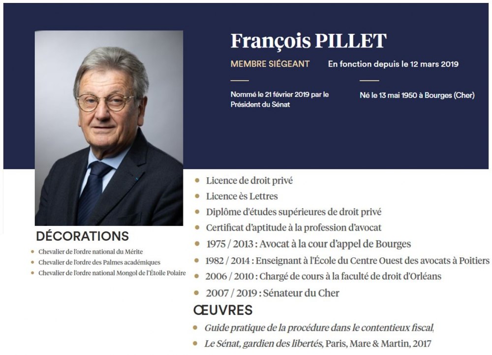 Cet avocat a été sénateur durant une dizaine d’années. Il a été chargé de cours durant quelques années à l’Université. C’est l’auteur de l’inoubliable ouvrage « Le Sénat, gardien des libertés ». Aucune expérience particulière en Droit constitutionnel. Comme il est « Chevalier de l’ordre national mongol de l’Étoile Polaire », gageons qu’il n’est pas du genre à perdre le nord.