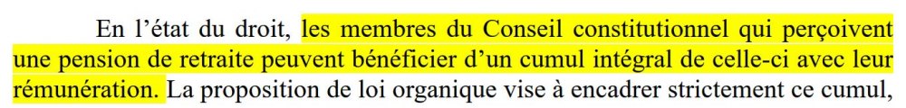 Dernier point, encore plus important. La rémunération illégale des membres du Conseil constitutionnel est intégralement cumulable avec une pension de retraite, ce qui n’est pas possible en général pour les retraités qui veulent exercer une activité, afin de ne pas creuser les déficits des régimes de retraite.