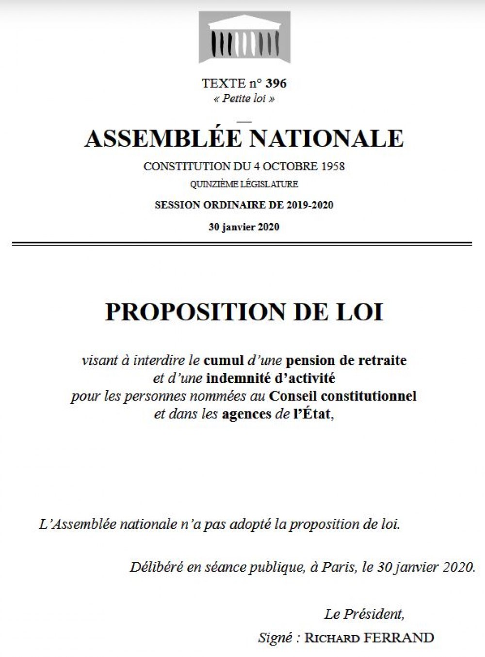 Une proposition de loi de 2019 a justement proposé « d’interdire le cumul d’une pension de retraite et d’une indemnité d’activité pour les personnes nommées au Conseil constitutionnel ». Elle a été rejetée par la majorité LREM.