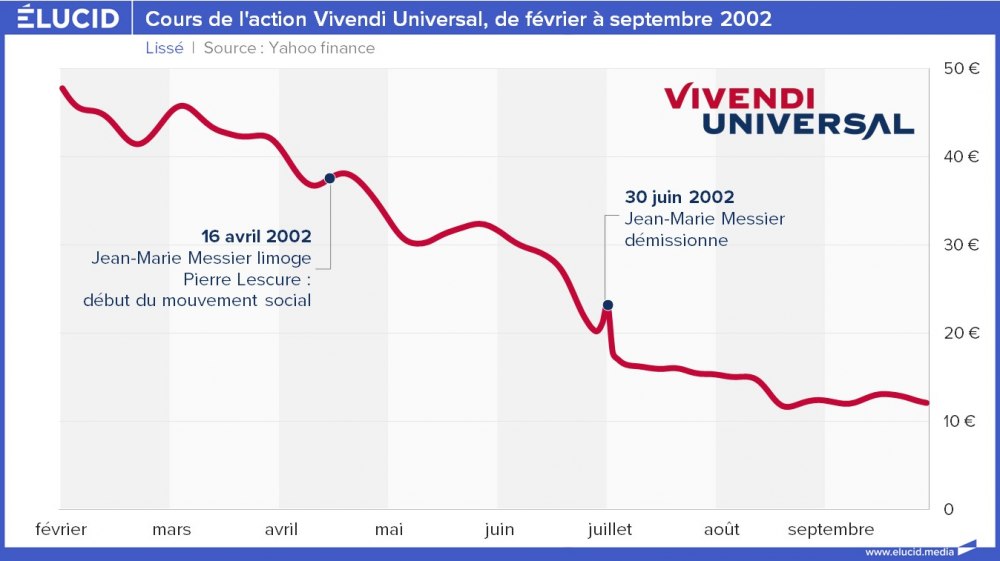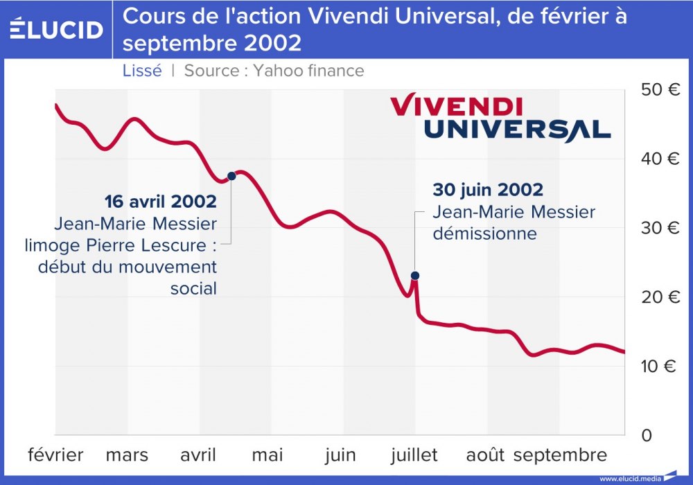 À ce moment-là, le groupe Vivendi Universal était au bord de la faillite : après une perte de près de 14 milliards d'euros en 2001, il annonce une perte abyssale de 23 milliards d'euros pour 2002, ce qui en fait le record de pertes annuelles pour une entreprise française. L'action dévisse durant toute l'année, les actionnaires perdent des sommes colossales.
