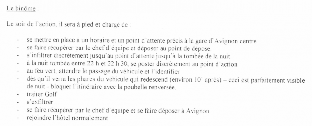 Finalement, Borelli lui téléphona : « "OK pour piéger Golf avec gros moyens." Et il a raccroché avant que j'aie pu répondre quoi que ce soit à cette énorme connerie de plus. »