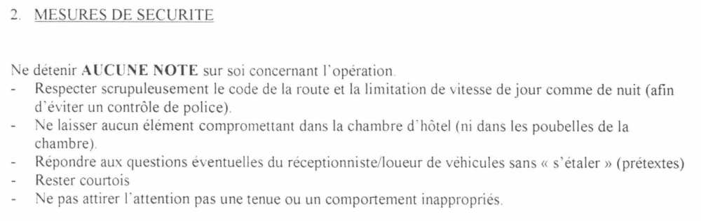 Dès lors, par prudence, il agit volontairement à rebours de toutes les pratiques d'espionnage, laissant de multiples traces derrière lui. « Payant justement tout avec la carte "business" de Canal, [... mettant] les locations à mon nom un peu partout [...], j'étais comme le Petit Poucet en train de semer des cailloux derrière moi. »
