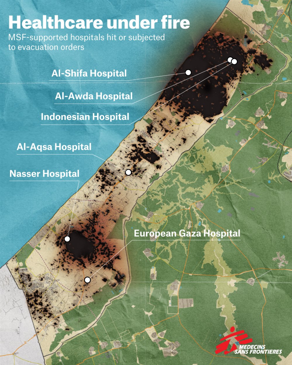 Hôpitaux soutenus par MSF touchés ou soumis à des ordres d'évacuation, 29 janvier 2024, MSF International