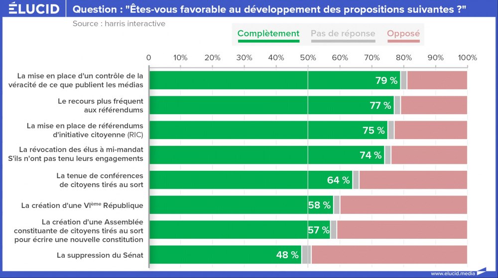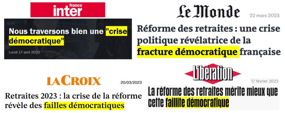La violence des réactions (exemples : 1, 2, 3, 4) a permis d’illustrer la gravité du problème de déficit démocratique en France. Résumons :