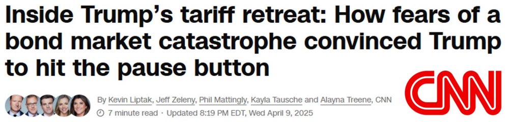 Pour justifier leur analyse, les médias français se sont en particulier appuyés sur un article de CNN, au titre ronflant : « Dans les coulisses de la reculade de Trump sur les tarifs douaniers : comment la peur d’un effondrement du marché obligataire a convaincu Trump d’appuyer sur le bouton pause ».