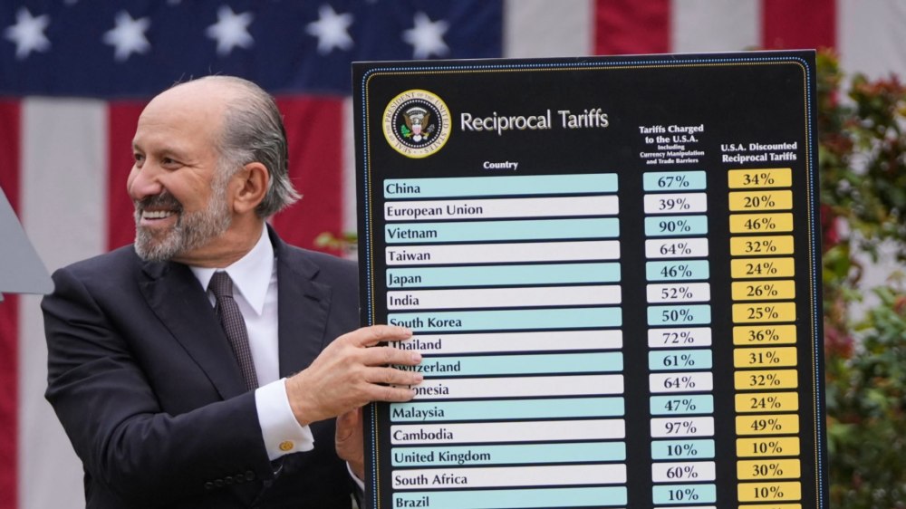 Le ministre américain du Commerce, Howard Lutnick, présente les nouveaux tarifs douaniers, 2 avril 2025 (Photo @AP)
