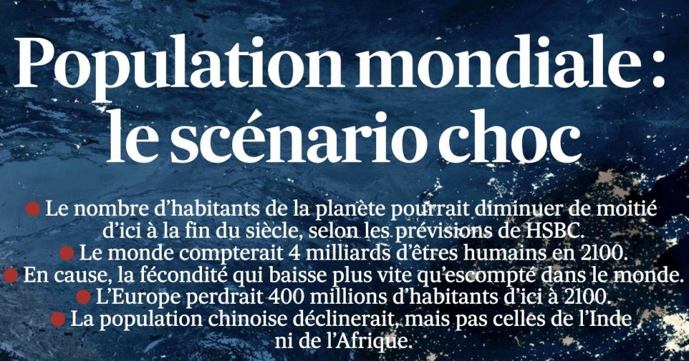 « Cette annonce d’une réduction de moitié de la population d’ici la fin du siècle est farfelue et ne repose sur aucun fait scientifique », affirme Gilles Pison, professeur émérite au musée d’histoire naturelle et conseiller à la direction de l’Institut national d’Études démographiques. En effet, l’argument principal de la thèse développée dans les Échos est la poursuite de l'actuelle chute du taux de fécondité. Or, même si on a de moins en moins d’enfants, d’après le spécialiste, le scénario d’une baisse aussi drastique de la population humaine reste très improbable au vu des connaissances actuelles. « Cela a autant de chances de se produire que la chute d’un astéroïde sur notre planète identique à celui responsable de l’extinction des dinosaures », ironise l’expert.
